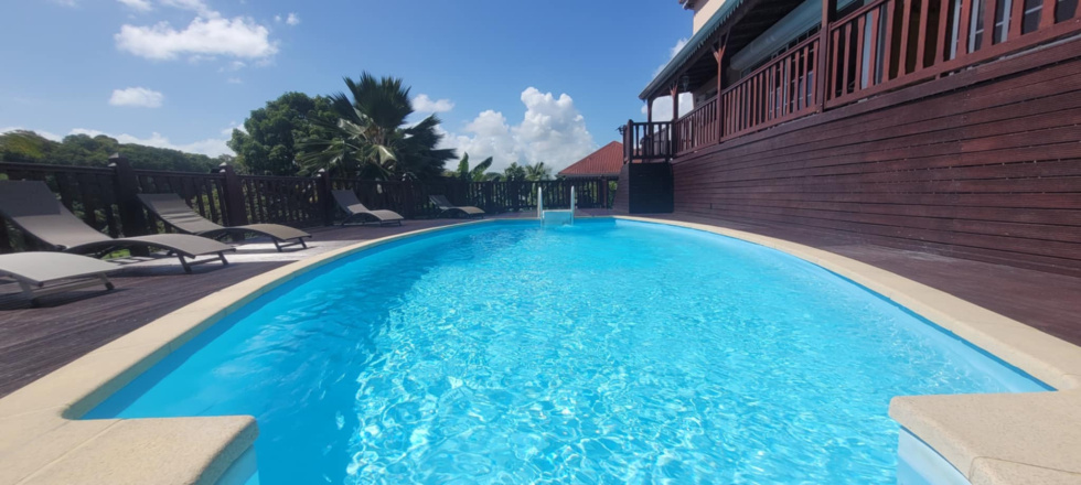 Vous pourez profiter de moments de détente privilégiés dans la piscine au sel 4X8 avec sa plage en deck entièrement refaite. Le carbet aménagé d'un barbecue est un bel espace de convivialité donnant sur le jardin clôturé.