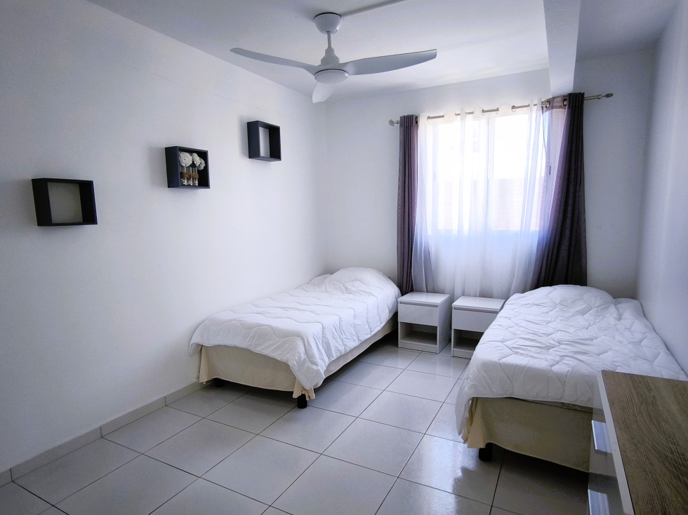 D'une superficie habitable de 54m2, il se compose d'un séjour climatisé avec coin cuisine, de deux chambres (dont une climatisée) d'une salle d'eau avec WC et d'une terrasse d'environ 20m2.