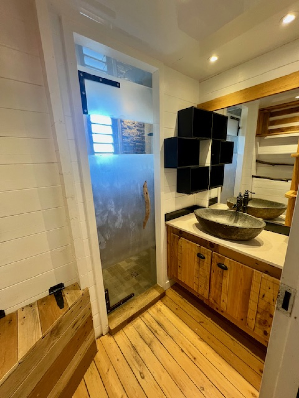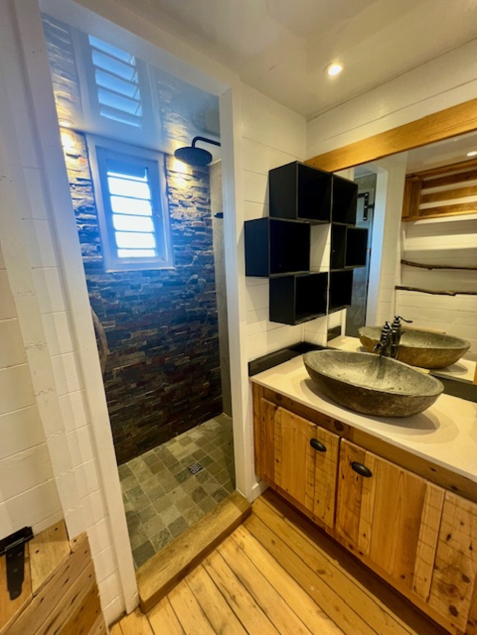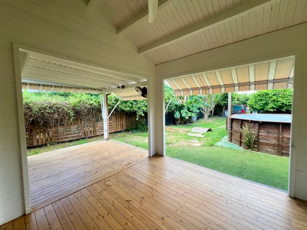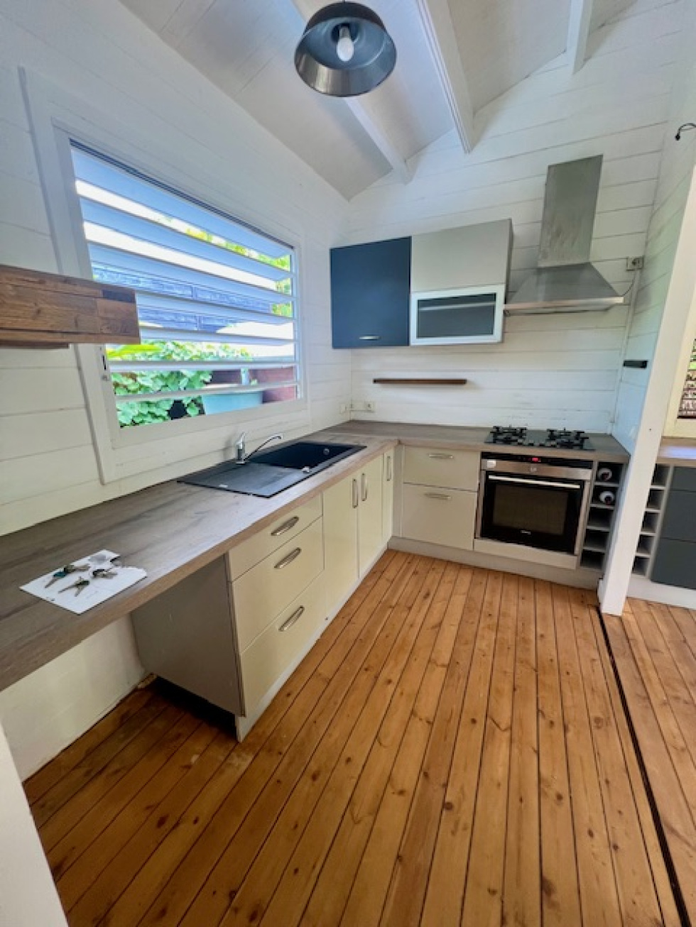 Située dans un environnement verdoyant et paisible, cette maison de type F3 en bois édifiée sur une parcelle de 400m2 allie confort et authenticité. Elle se compsose d'un salon ouvert sur cuisine et terrasse, de deux chambres climatisées, une salle d'eau, un wc indépendant.