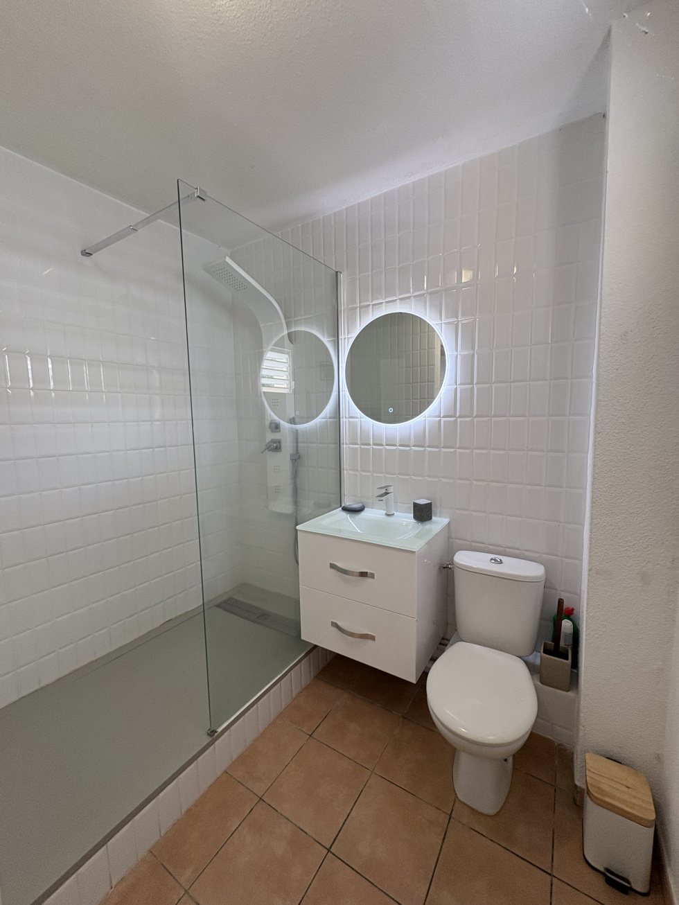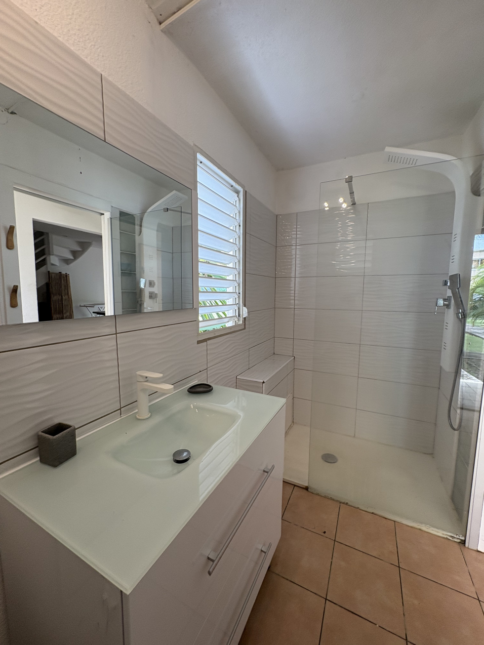 Située sur le secteur de Dampierre proche de toutes commodités dans un environnement calme, venez visiter cette maison T4 mitoyenne et en duplex de 90m2 meublée. Elle se compose d'un séjour et salle à manger lumineux, une cuisine entièrement équipée (réfrigérateur, micro-ondes, four, lave vaisselle...), une salle d'eau avec WC. A l'étage trois chambres climatisées, une autre salle d'eau avec WC. Une terrasse avec vue sur le jardin privatif. Toutes les pièces sont équipées de brasseurs d'air. Une place de parking à disposition. Loyer : 1576,61€ comprenant les charges de copropriété. Contactez nous pour programmer votre visite au 0590. 38. 10. 88.