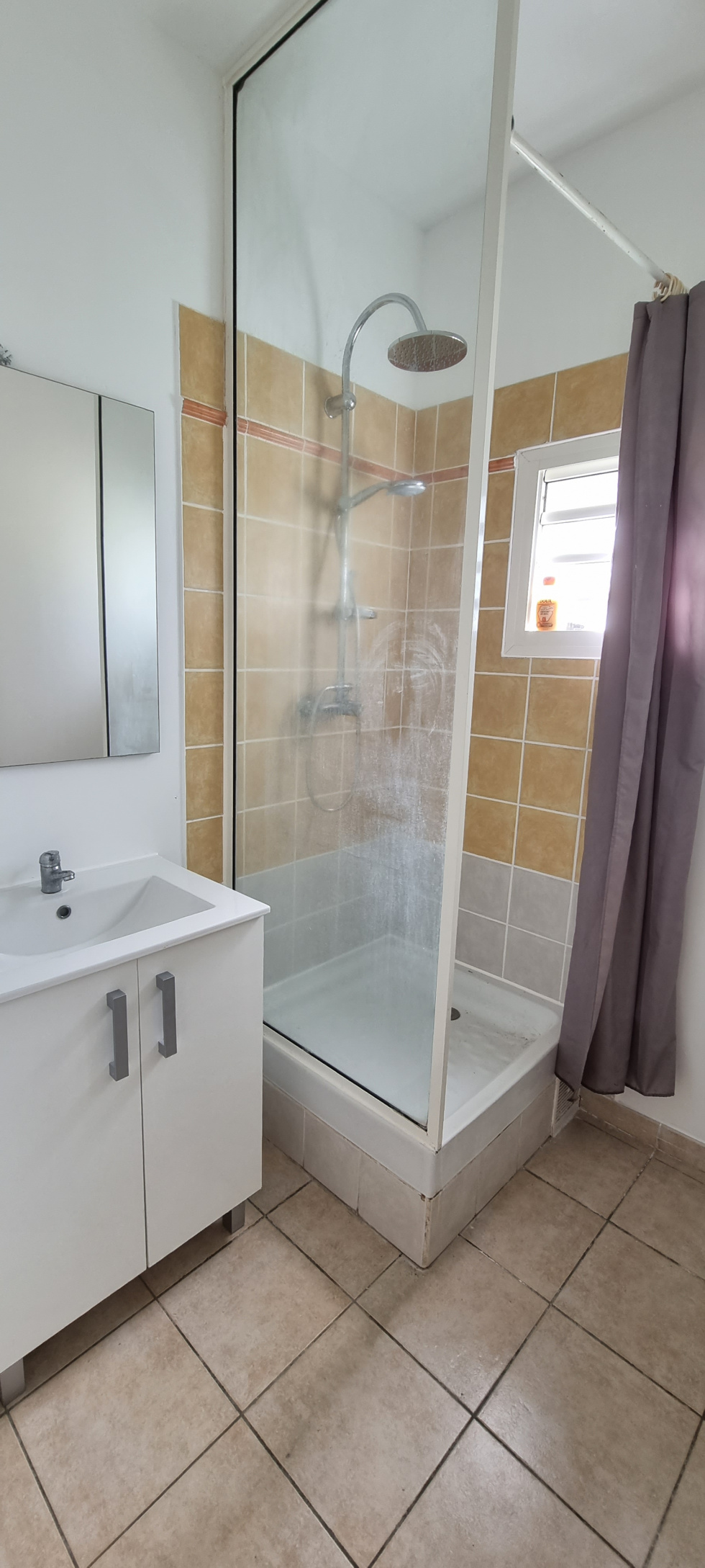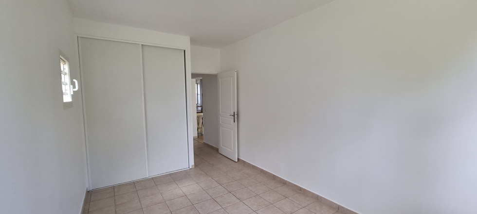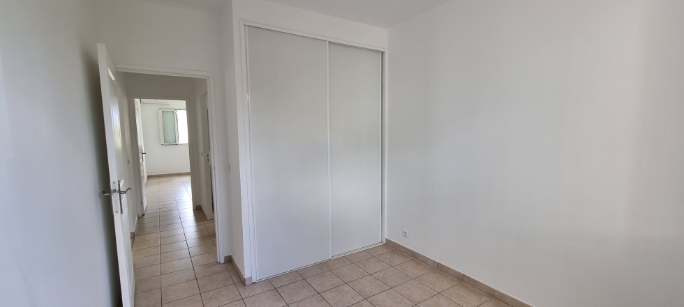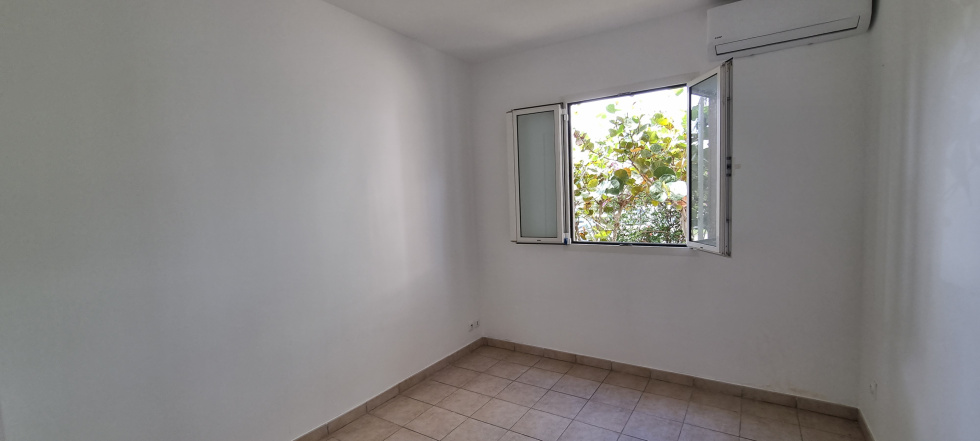 Il se compose d'une entrée avec placard, d'un séjour, d'une cuisine équipée d'une plaque et d'une hotte, un dégagement donnant accès à deux chambres climatisées avec placard intégrés, une salle d'eau et un WC indépendant.
