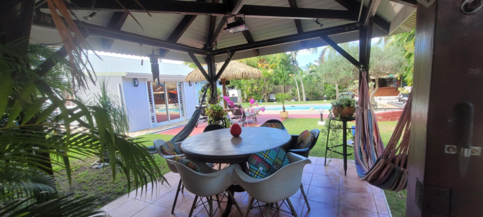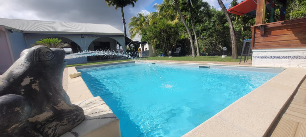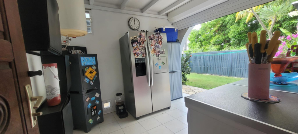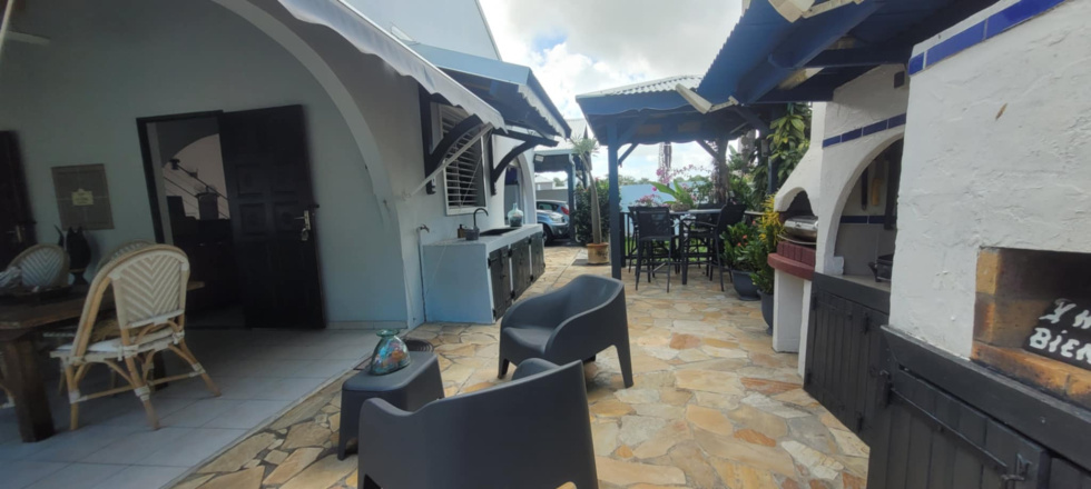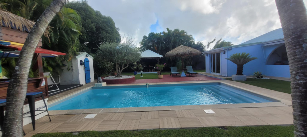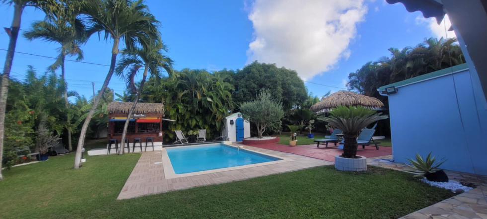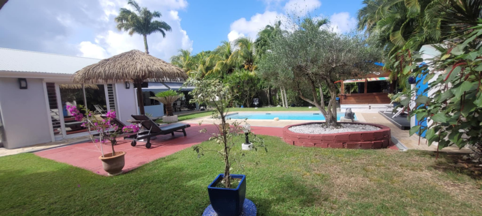 Édifiée sur un terrain entièrement clôturé de 1 000 m², la propriété est sécurisée par un portail électrique. Le jardin, soigneusement entretenu, est agrémenté d’arbres fruitiers, d’essences tropicales et de plusieurs espaces de détente : carbet, barbecue, bar extérieur convivial en bord de piscine, parfait pour les moments de partage. Un atelier et un carport pouvant accueillir jusqu’à quatre véhicules viennent compléter les prestations.