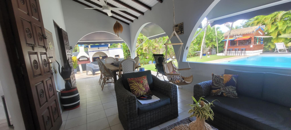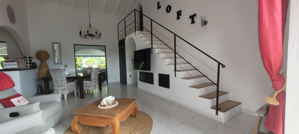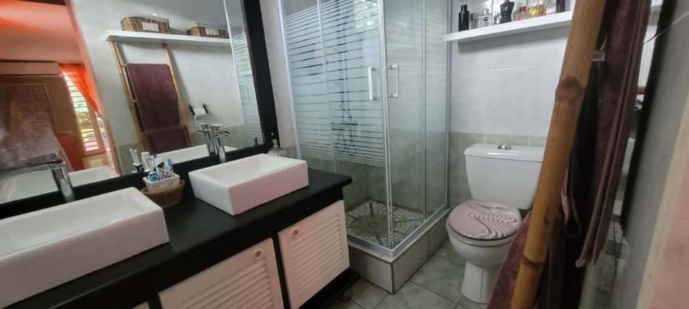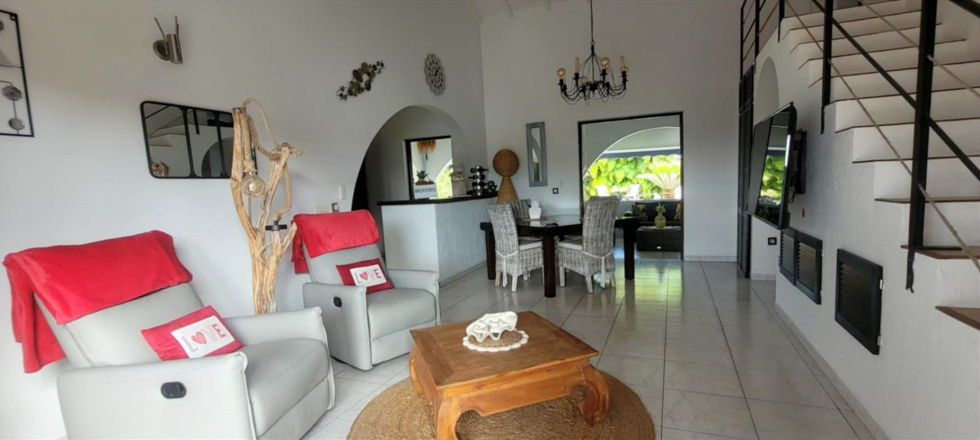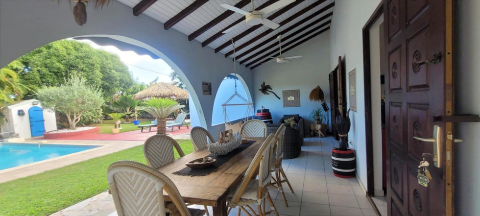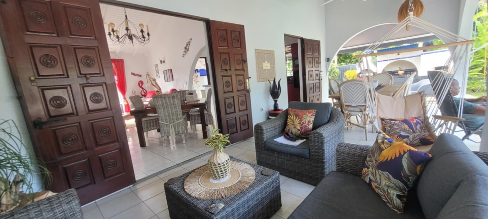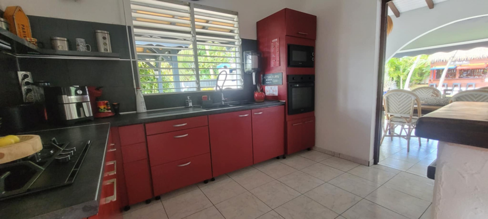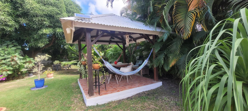 Édifiée sur un terrain entièrement clôturé de 1 000 m², la propriété est sécurisée par un portail électrique. Le jardin, soigneusement entretenu, est agrémenté d’arbres fruitiers, d’essences tropicales et de plusieurs espaces de détente : carbet, barbecue, bar extérieur convivial en bord de piscine, parfait pour les moments de partage. Un atelier et un carport pouvant accueillir jusqu’à quatre véhicules viennent compléter les prestations.