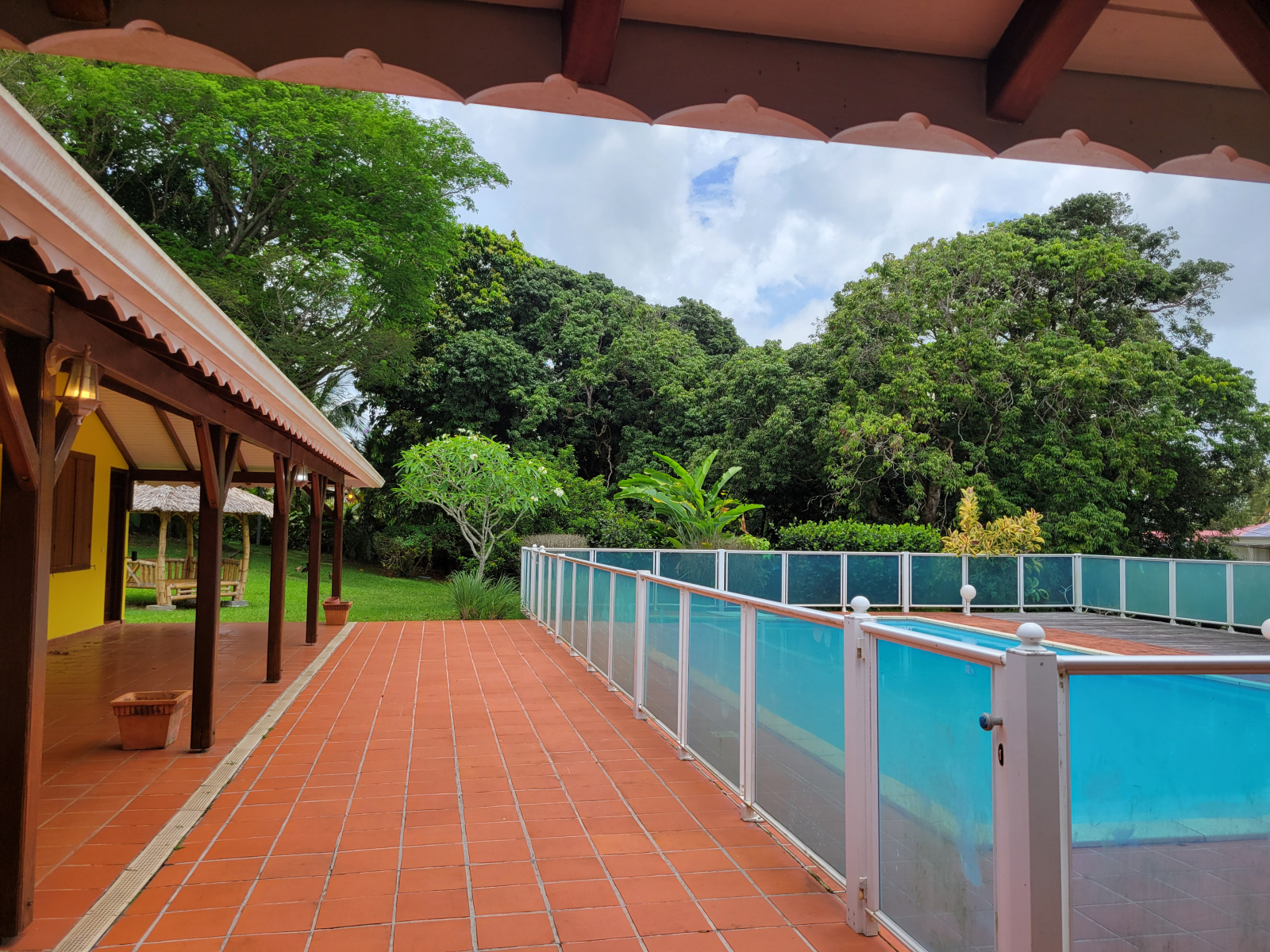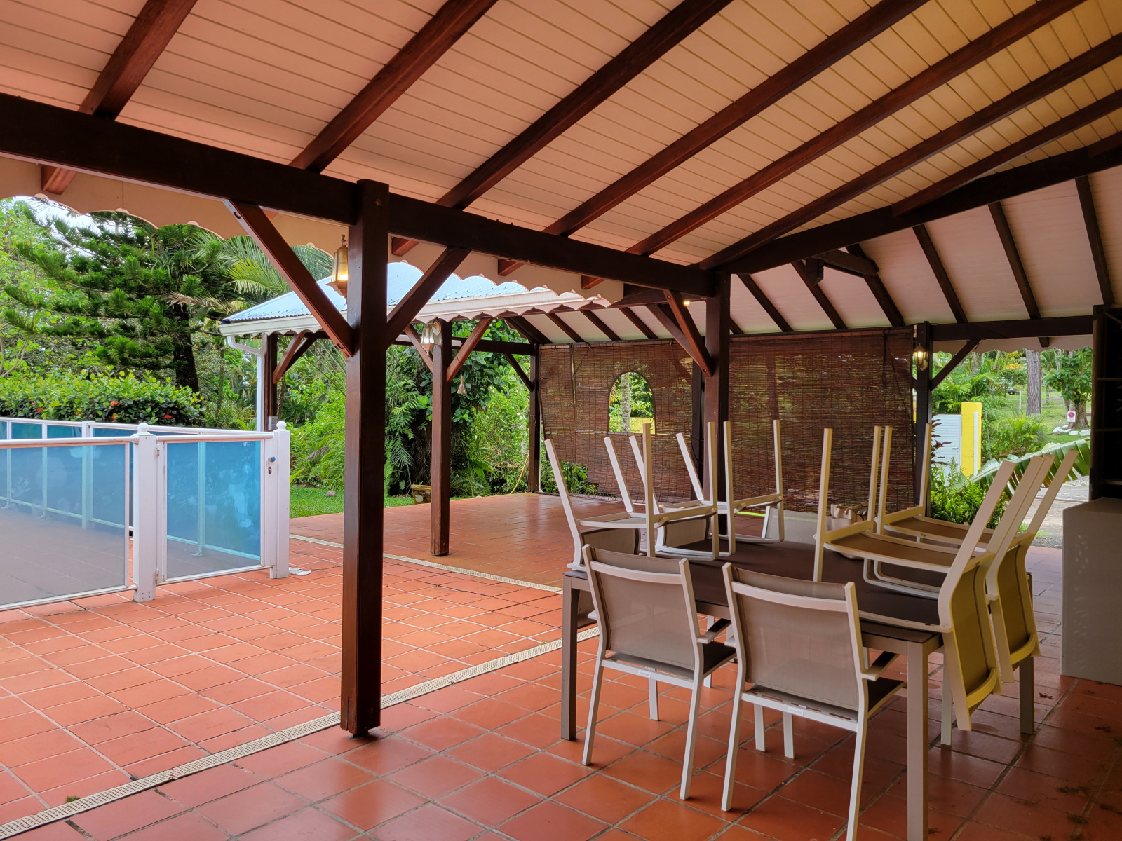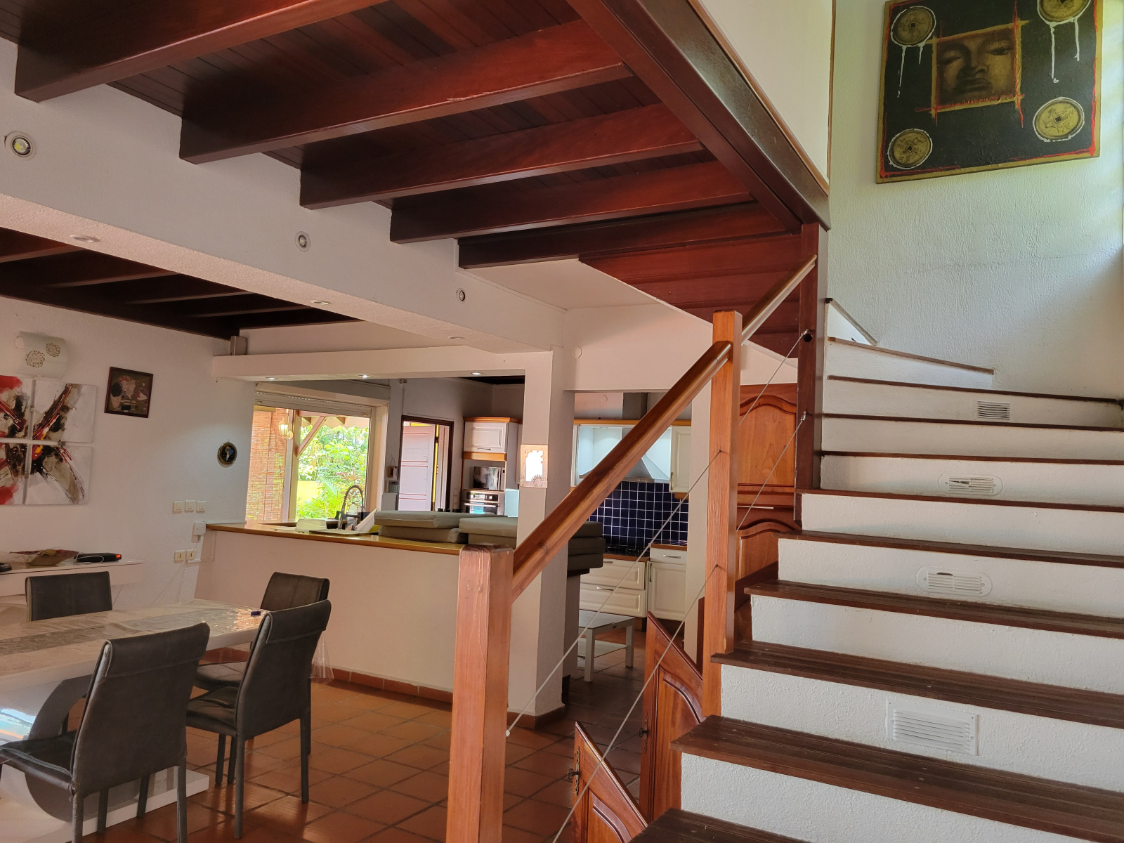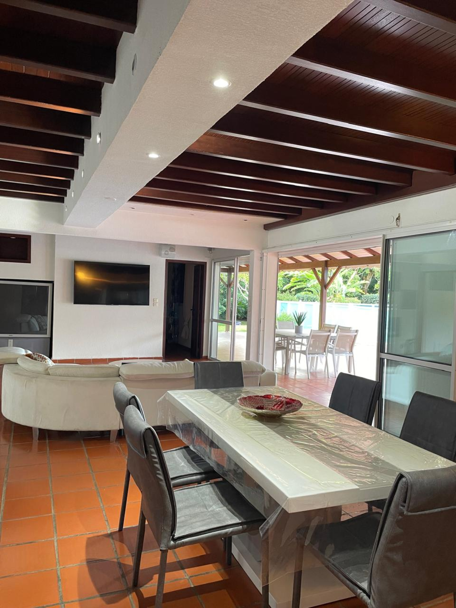 Exceptionnel et sans vis-à-vis. Cette demeure meublée T8 est blottie au coeur d'un jardin tropical arboré de 4800 m2. Elle dispose d'un très vaste séjour ouvert sur la piscine. La cuisne américaine est moderne et bien équipée.