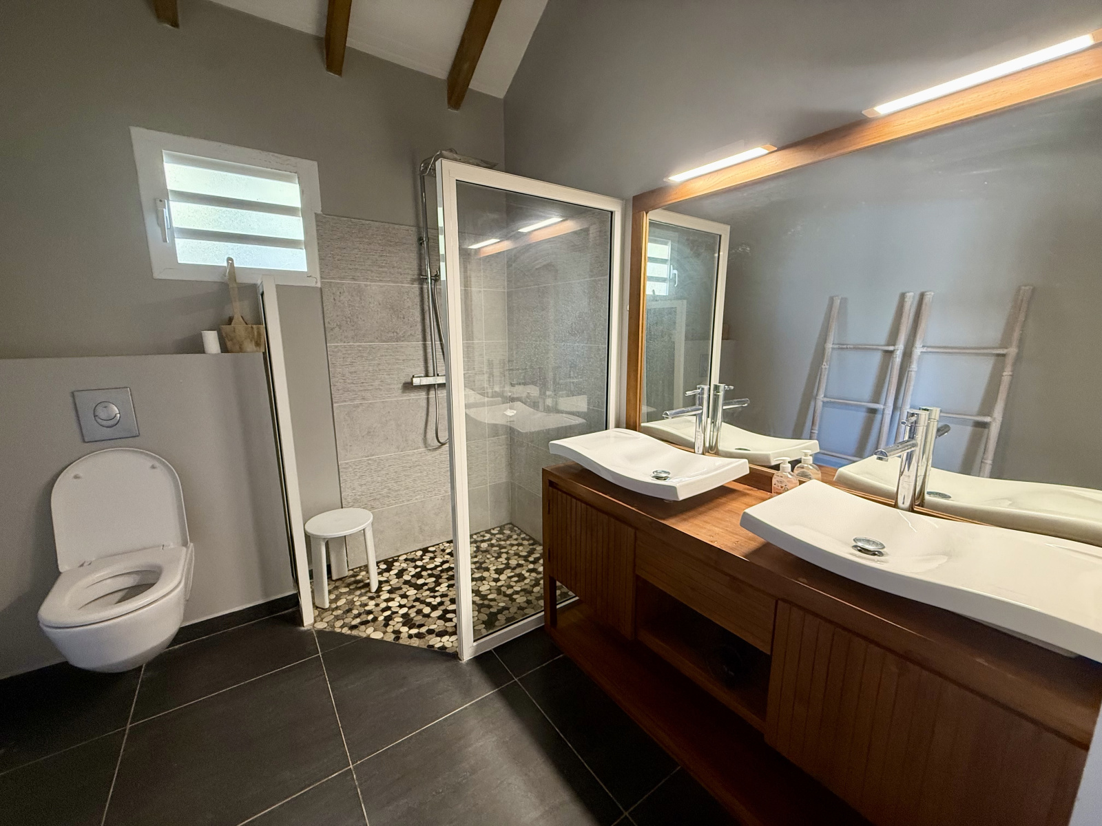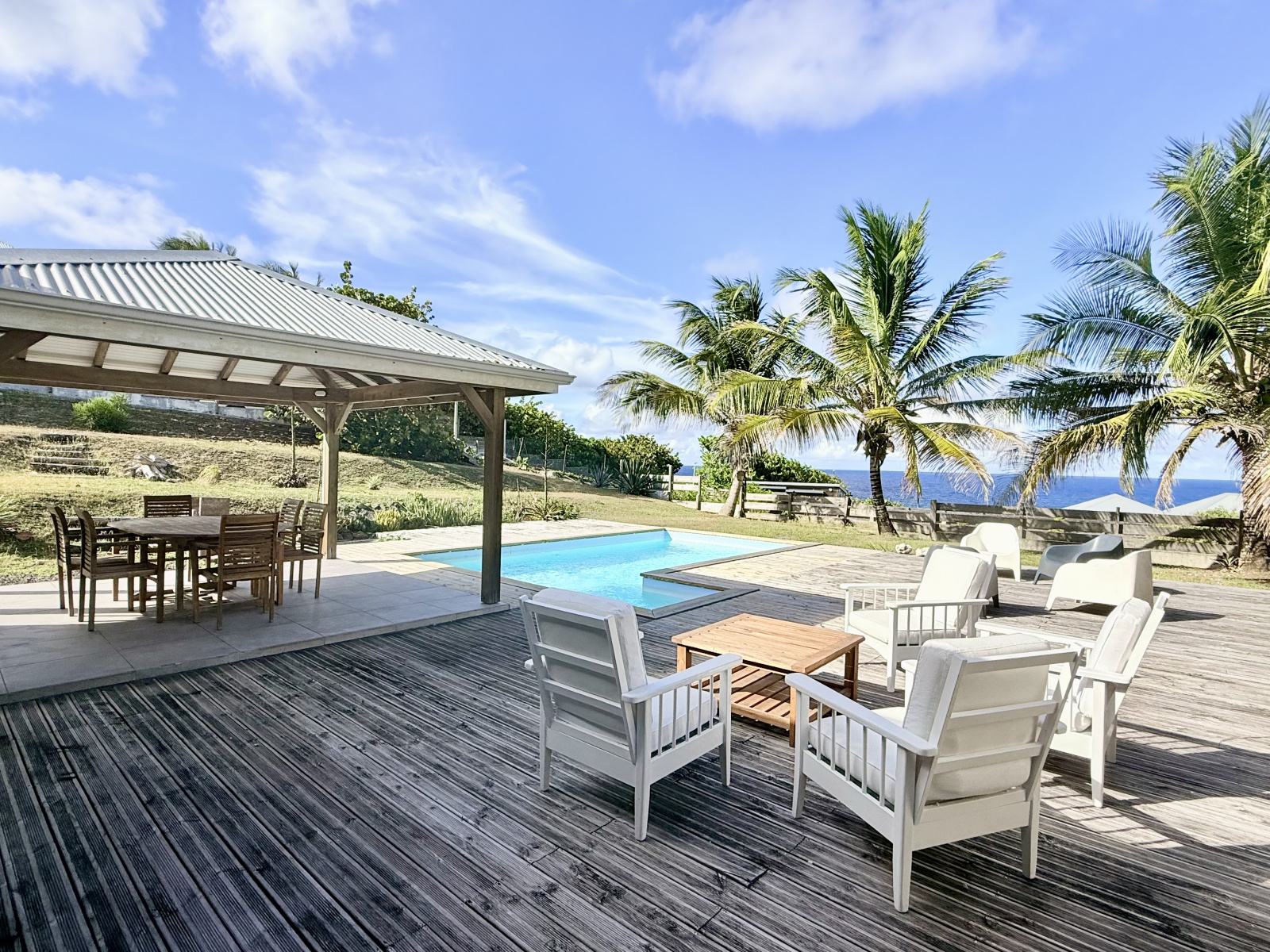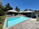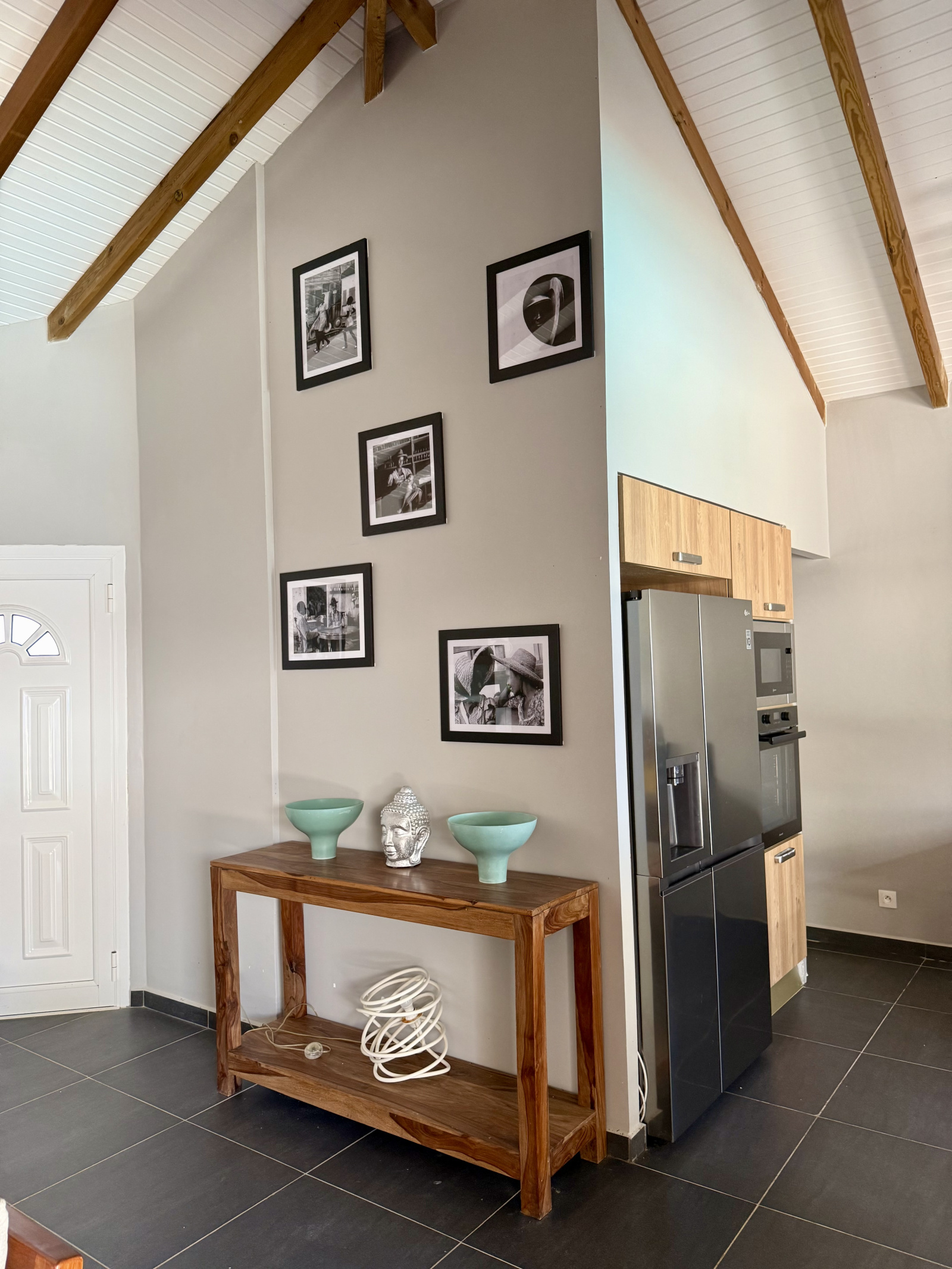 Découvrez cette superbe villa de 114 m² idéalement située, sur la commune du Moule, à deux pas de la mer, dans un environnement calme et verdoyant, parfait pour les amoureux de la nature. Cette maison offre de beaux volumes et une circulation fluide avec un salon lumineux ouvert sur une agréable terrasse, permettant de profiter pleinement de la vue mer et de l’extérieur. La cuisine, fonctionnelle et conviviale, s’intègre harmonieusement à l’espace de vie. Côté nuit, la villa dispose de trois chambres, dont une suite parentale avec dressing, salle d’eau privative et un espace salon de 12 m², idéal pour créer un coin détente ou bureau. Deux salles d’eau et trois WC complètent le bien, offrant un confort optimal au quotidien. À l’extérieur, vous profiterez d’une piscine au sel, parfaite pour se rafraîchir tout en appréciant le cadre naturel environnant. Les prestations supplémentaires incluent : • Une citerne • Un garage • La possibilité de stationner deux véhicules Cette villa est idéale pour une famille ou pour toute personne recherchant un cadre de vie paisible, proche de la mer et en harmonie avec la nature.