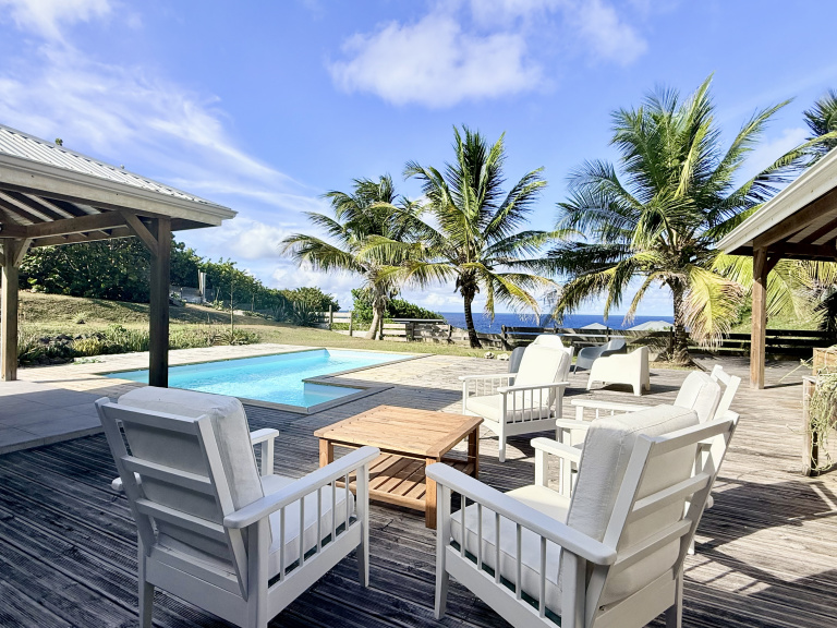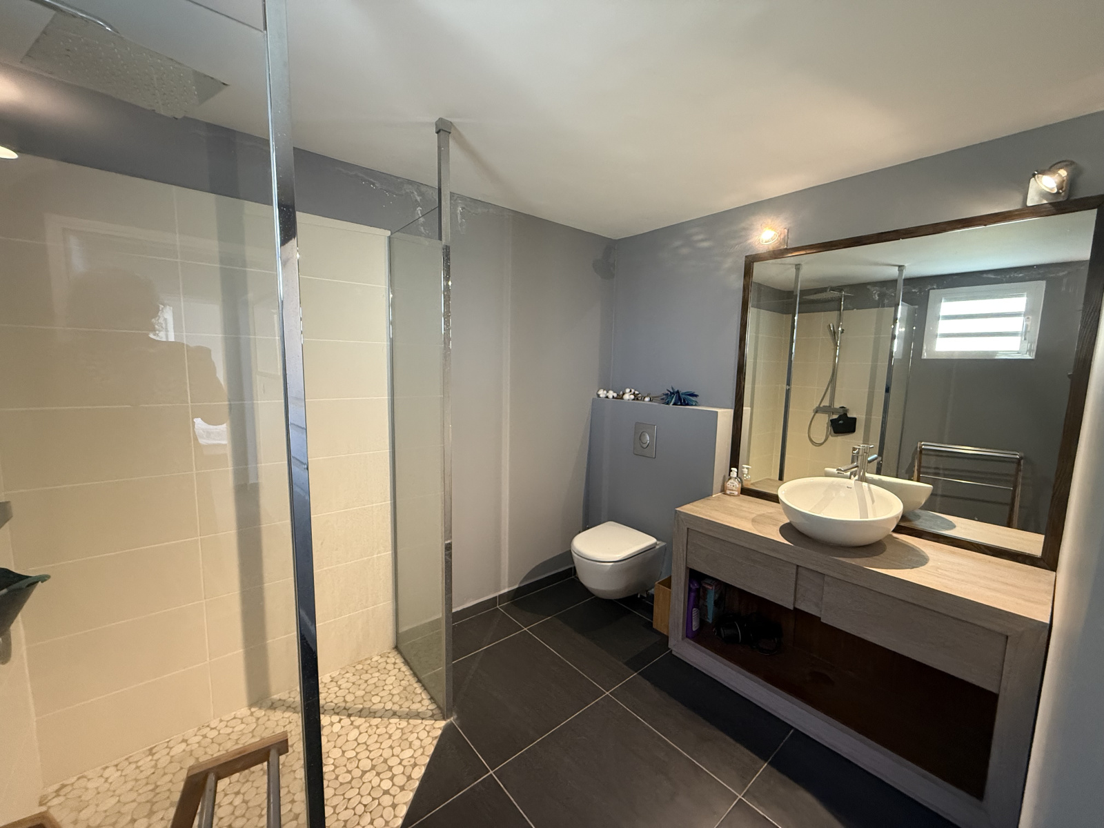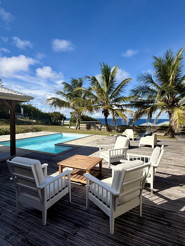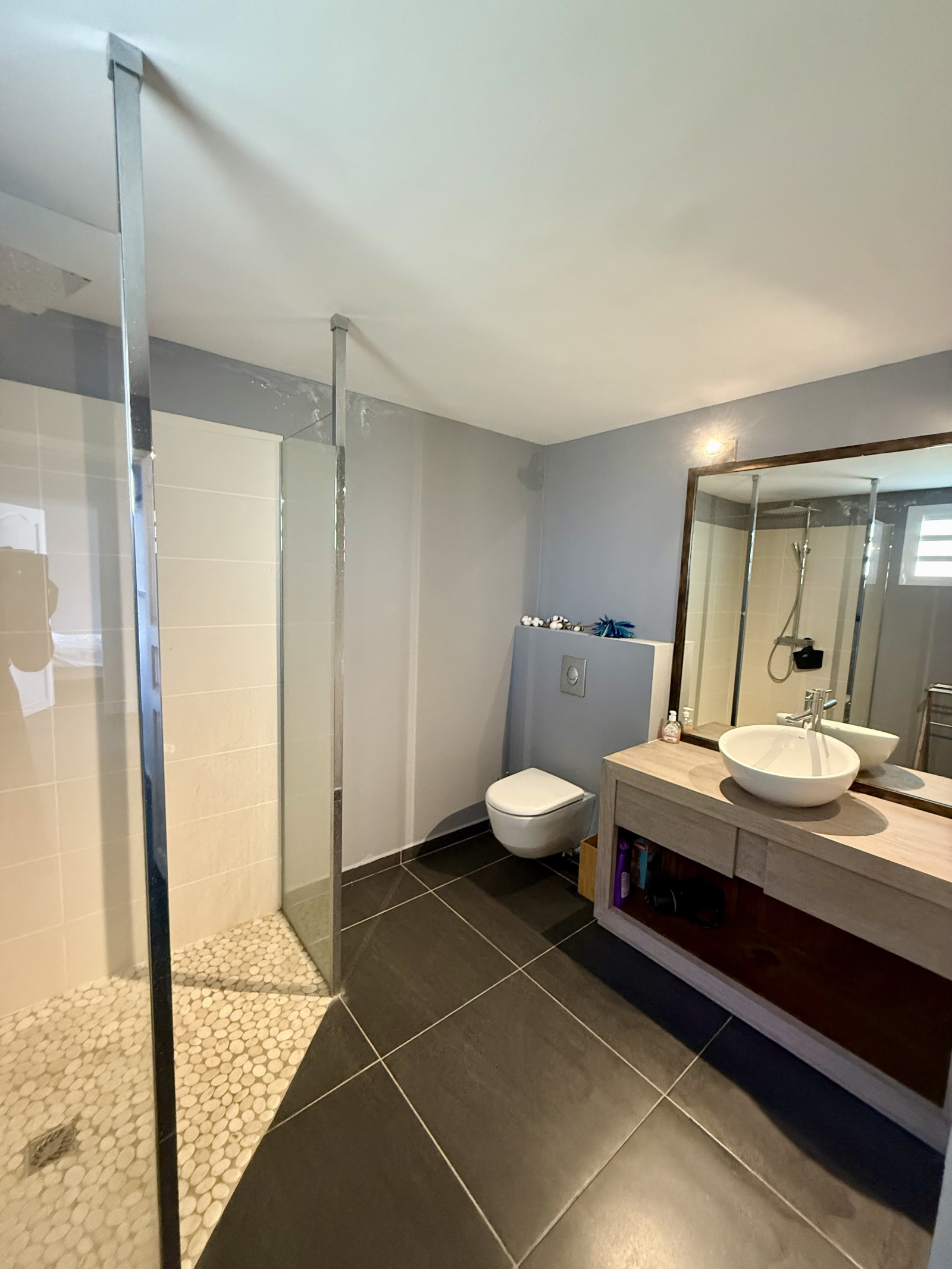 Découvrez cette superbe villa de 114 m² idéalement située, sur la commune du Moule, à deux pas de la mer, dans un environnement calme et verdoyant, parfait pour les amoureux de la nature. Cette maison offre de beaux volumes et une circulation fluide avec un salon lumineux ouvert sur une agréable terrasse, permettant de profiter pleinement de la vue mer et de l’extérieur. La cuisine, fonctionnelle et conviviale, s’intègre harmonieusement à l’espace de vie. Côté nuit, la villa dispose de trois chambres, dont une suite parentale avec dressing, salle d’eau privative et un espace salon de 12 m², idéal pour créer un coin détente ou bureau. Deux salles d’eau et trois WC complètent le bien, offrant un confort optimal au quotidien. À l’extérieur, vous profiterez d’une piscine au sel, parfaite pour se rafraîchir tout en appréciant le cadre naturel environnant. Les prestations supplémentaires incluent : • Une citerne • Un garage • La possibilité de stationner deux véhicules Cette villa est idéale pour une famille ou pour toute personne recherchant un cadre de vie paisible, proche de la mer et en harmonie avec la nature.