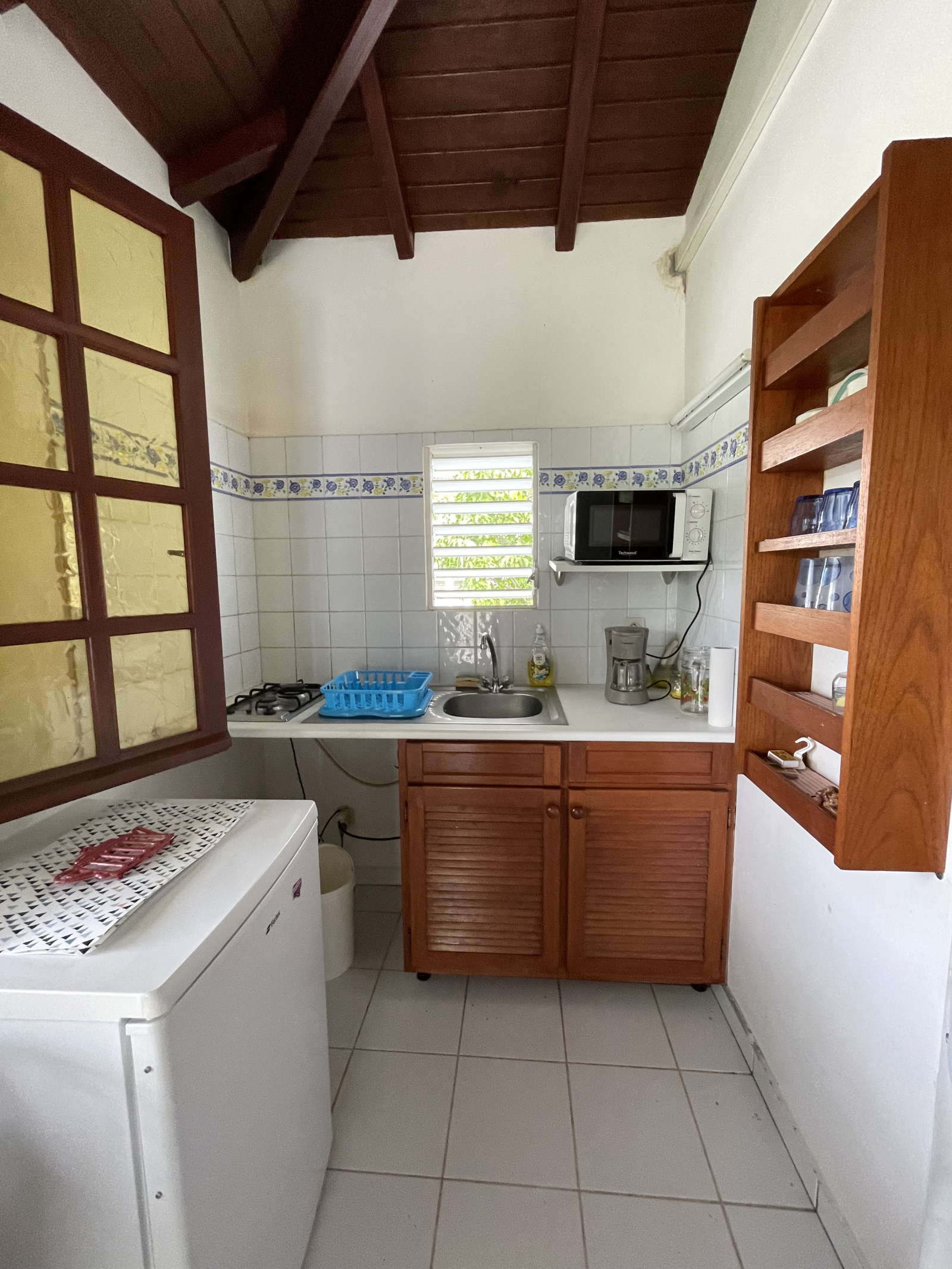 Actuellement disponible à la location, ce studio de 23m2 hors terrasse entièrement meublé se situe sur le secteur du Gosier, à seulement quelques minutes du bourg et plages, dans un environnement calme, proche des commodités (ligne de bus, commerces, écoles, grands axes...). Il se compose d'une pièce principale très lumineuse avec une belle hauteur sous plafond qui agrandi la pièce, une kitchenette toute équipée, une salle d'eau avec WC, une belle terrasse en avec vue sur le jardin. Loyer 695€ C.C. (eau, électricité, internet fibre, gaz, entretien du jardin). Propriété sécurisée avec parking extérieur. DISPONIBLE DE SUITE ! Contactez-nous pour visiter.
