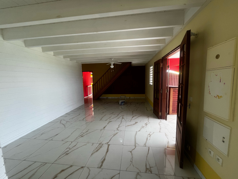 L'Agence IMMO CONSEIL vous propose un beau haut de villa disponible sur la commune de Baie-Mahault, il se compose d'un grand séjour avec une cuisine aménagée, deux chambres climatisées, une salle d'eau et un WC indépendant au rez-de-chaussée. Au 1 er étage une grande mezzanine fermée pouvant servir de chambre parentale avec sa salle d'eau privative et un balcon privé . Une terrasse en L et une terrasse derrière la maison . Location non meublée avec un garage pour deux voitures . Loyer : 1200 CC - Eau et électricité inclus Info : Accès avec un morne en pente.