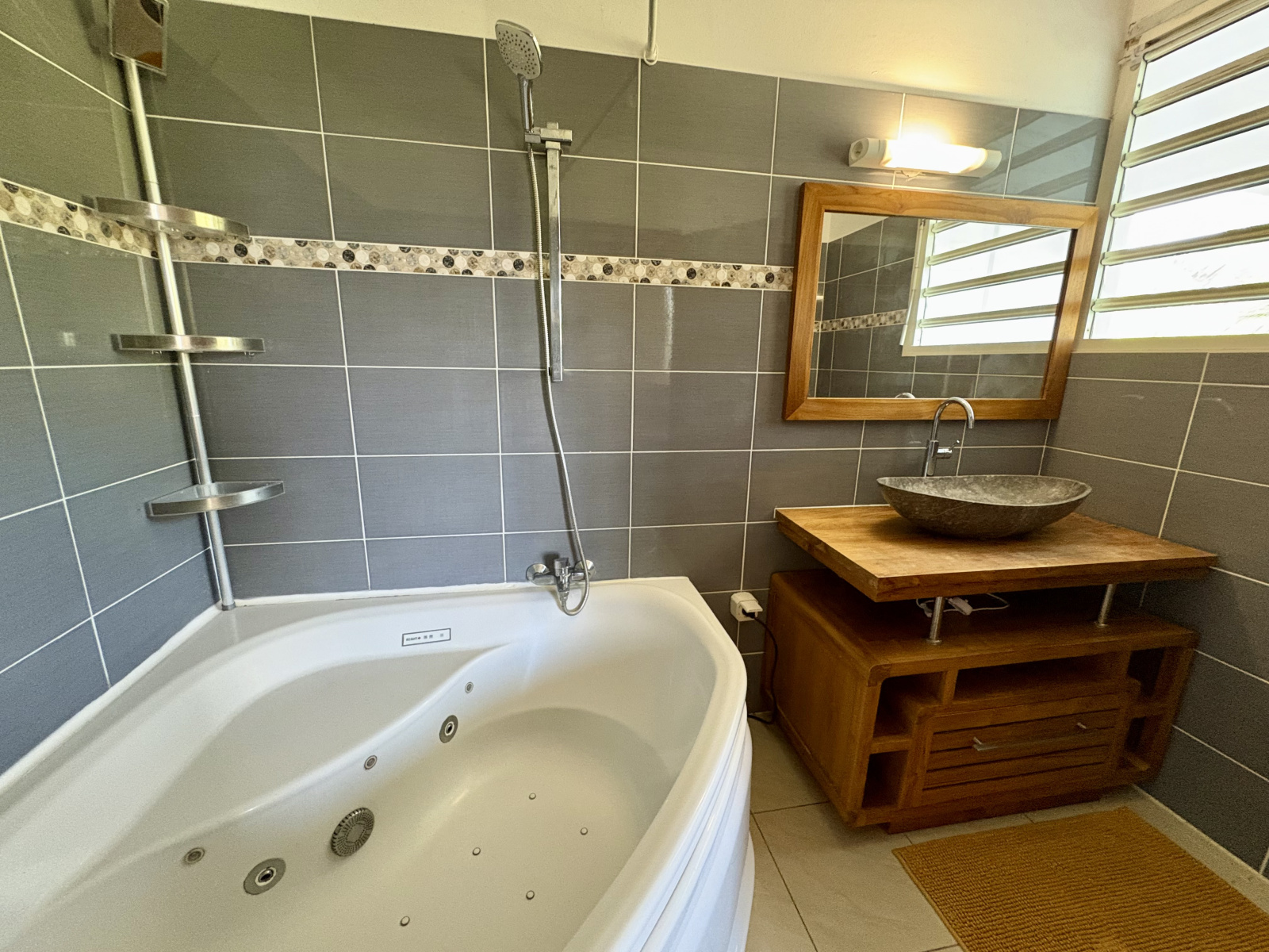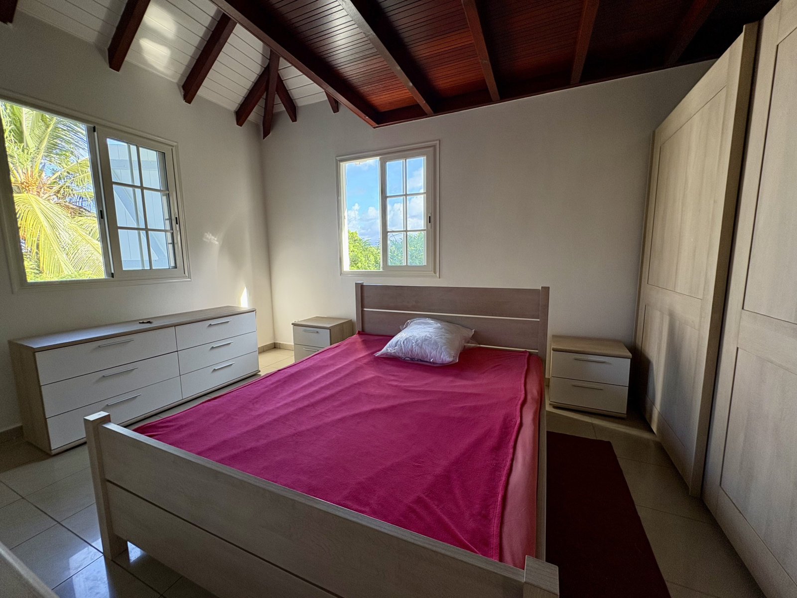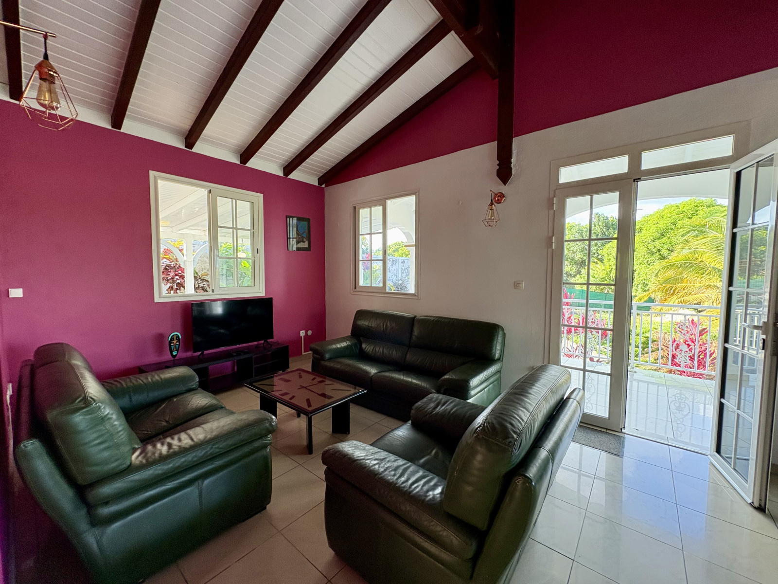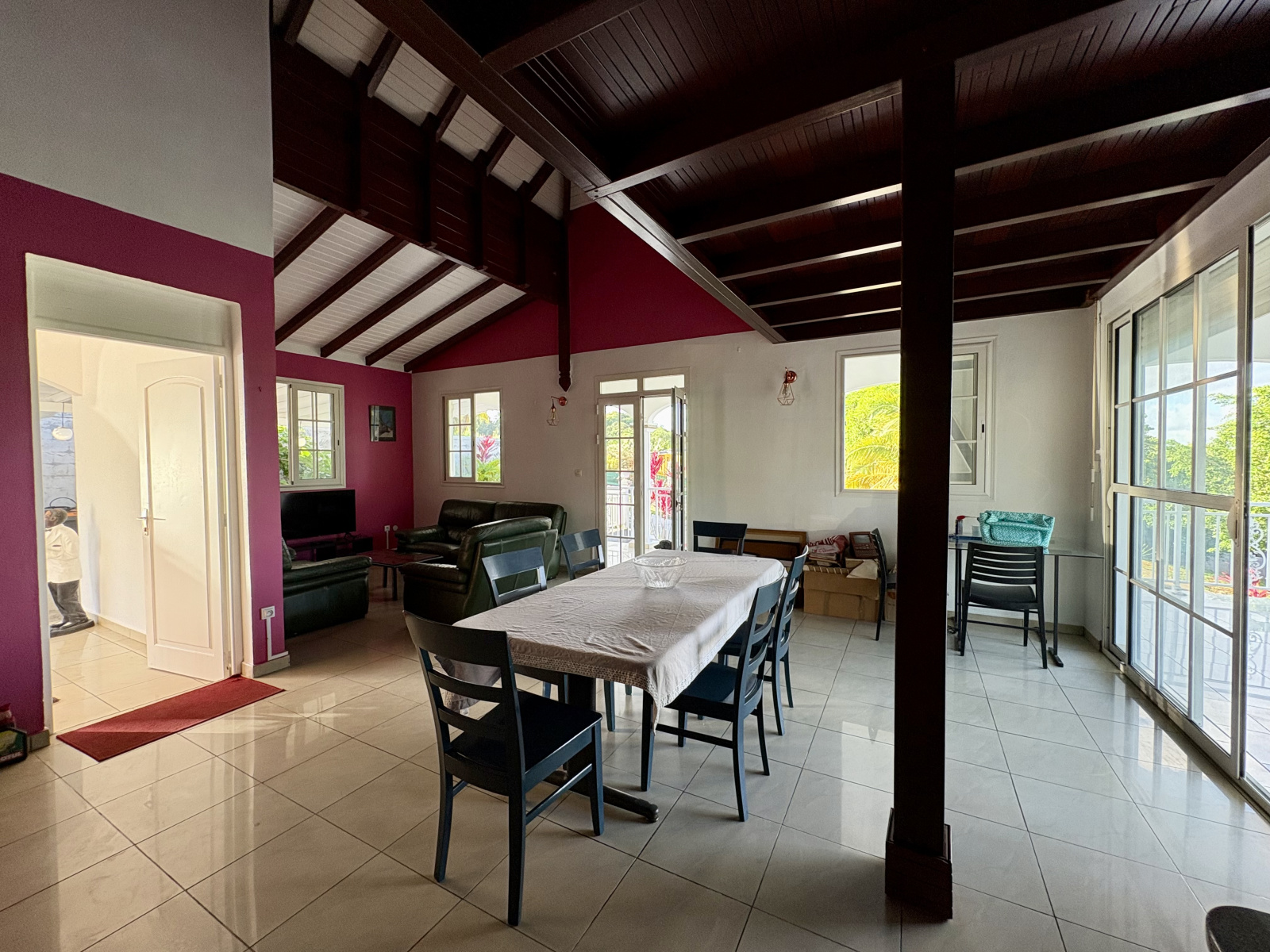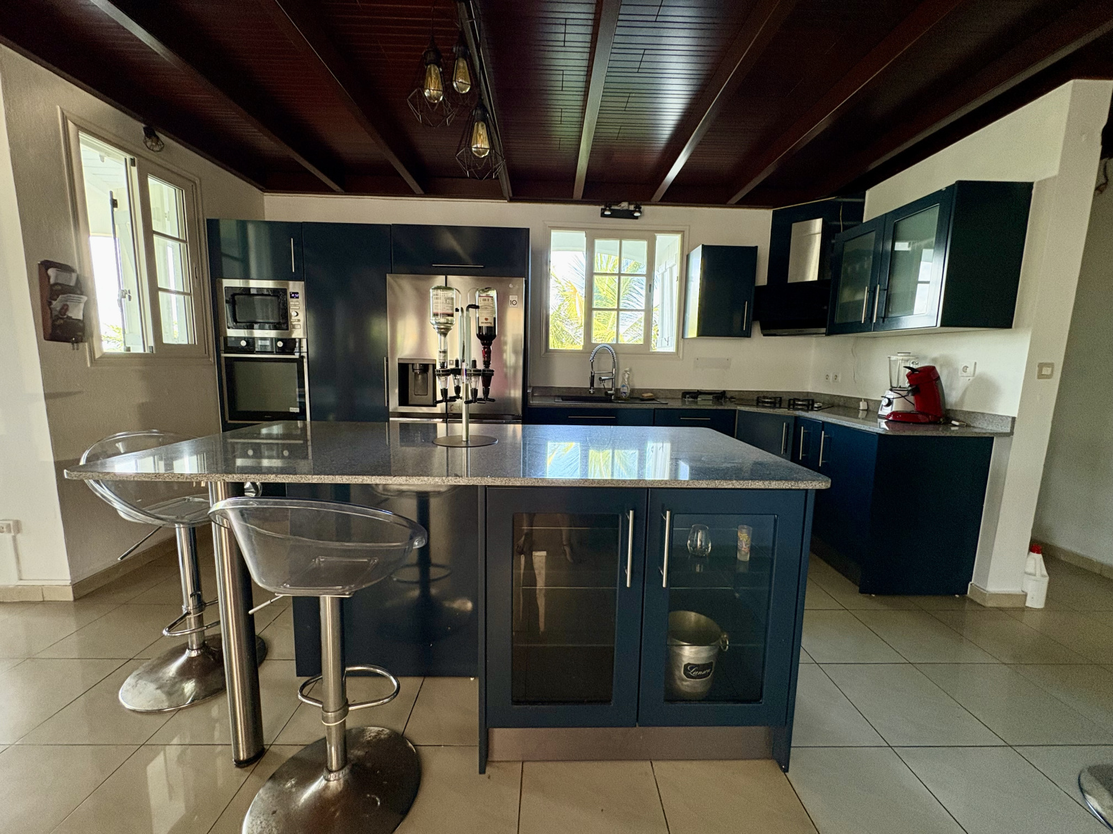Sur le secteur de Calvaire, dans un environnement calme à la campagne et à moins de 15mn de Jarry, venez découvrir cette maison T4 de 118m2 de surface habitable meublée ou semi meublée. Elle se compose d'un spacieux séjour lumineux avec une grande mezzanine, une cuisine américaine équipée (four, micro-ondes, frigo américain, plaque, hotte...), un dégagement donnant accès à trois chambres équipées de rangements dont une suite parentale avec espace mezzanine et salle de bain/WC, une salle d'eau avec WC, un WC indépendant et une buanderie. Trois belles terrasses agréablement ventilées et vue sur la campagne sont à votre disposition dont une avec kitchenette. Une belle allée avec un espace couvert joliment arborée vous permettra de garer plusieurs véhicules. Pour finir, vous pourrez profiter d'une variété d'arbre fruitiers présent sur la propriété (corossol, fruit à pain, cythere, citronnier, bananier...). Une citerne d'eau de pluie est également à votre disposition. Contactez nous au plus vite pour votre visite au 0590. 38. 10.88.