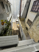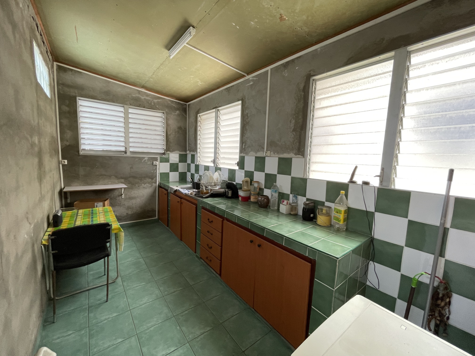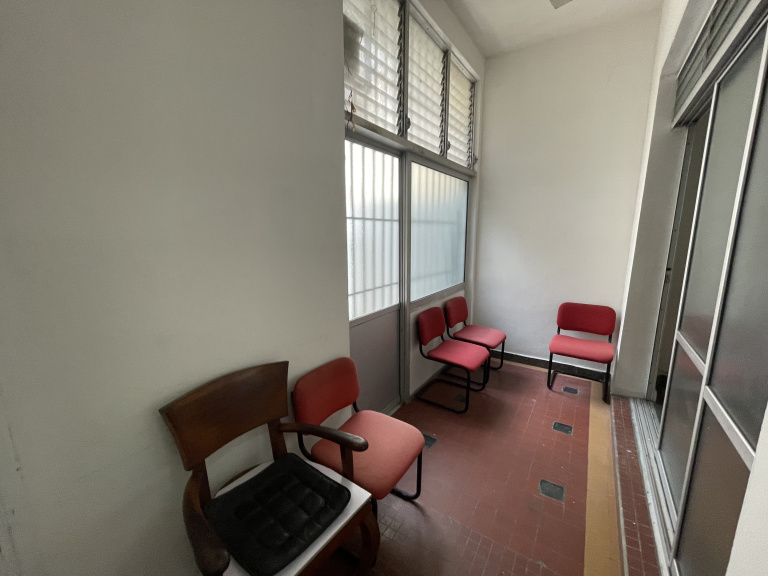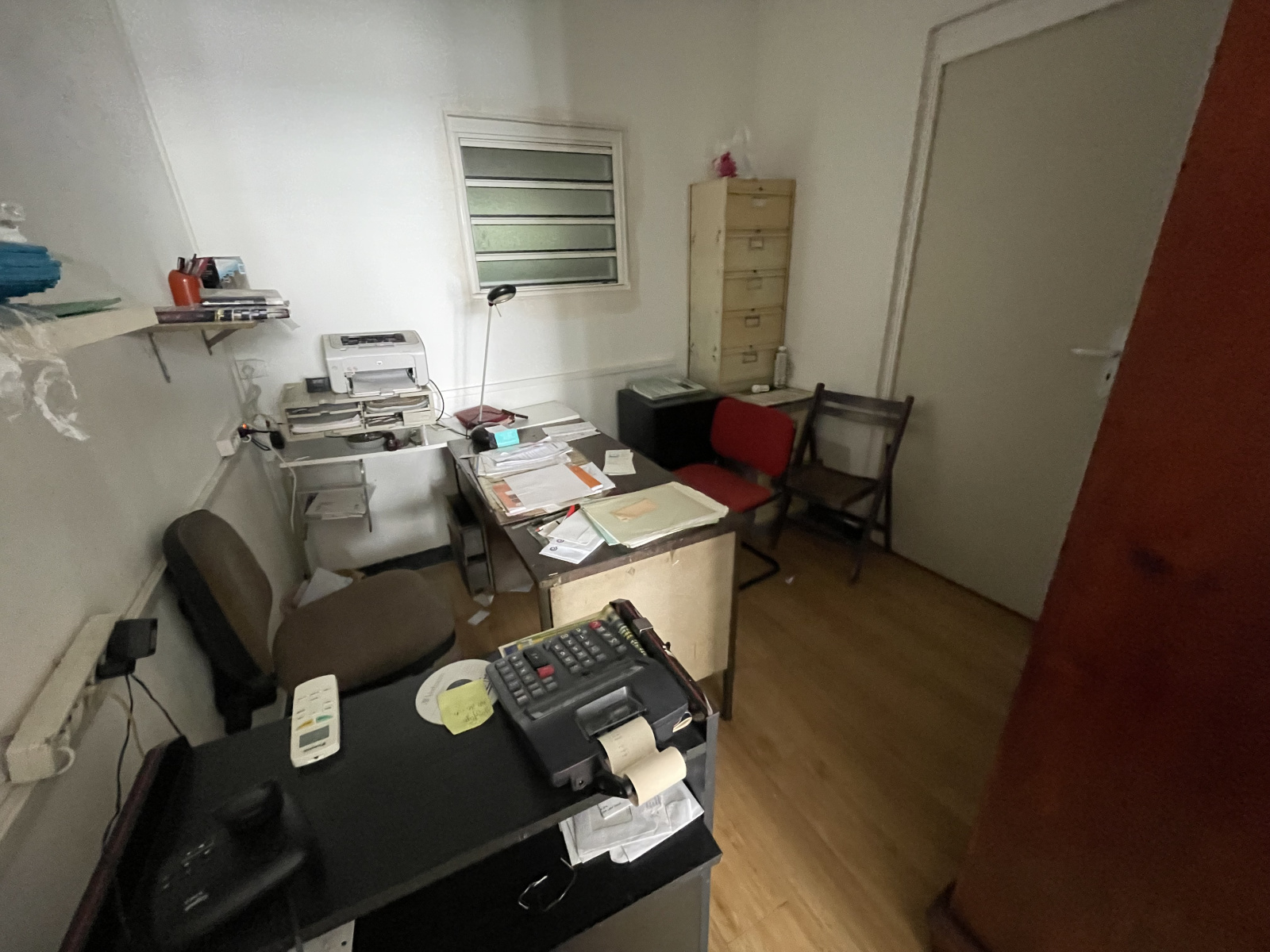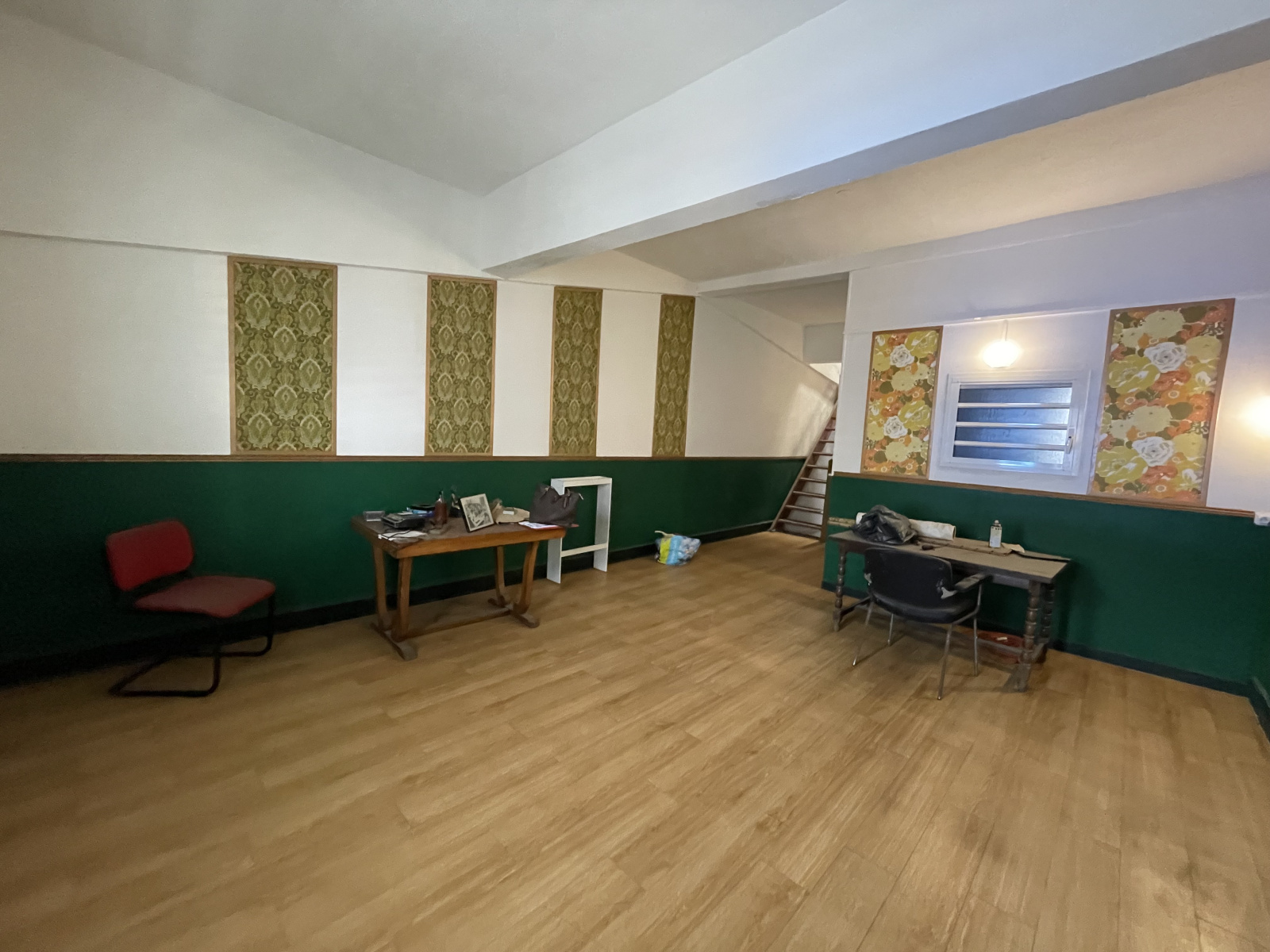 Vous arriverez directement sur une pièce servant de salle d'attente, un couloir délimité par des cloisons en alu donnant accès à un grand bureau avec balcon côté rue Schoelcher, un autre bureau avec rangement. De l'autre côté, libre de toute occupation, deux pièces avec accès sur une cour extérieur, une salle d'eau avec WC.