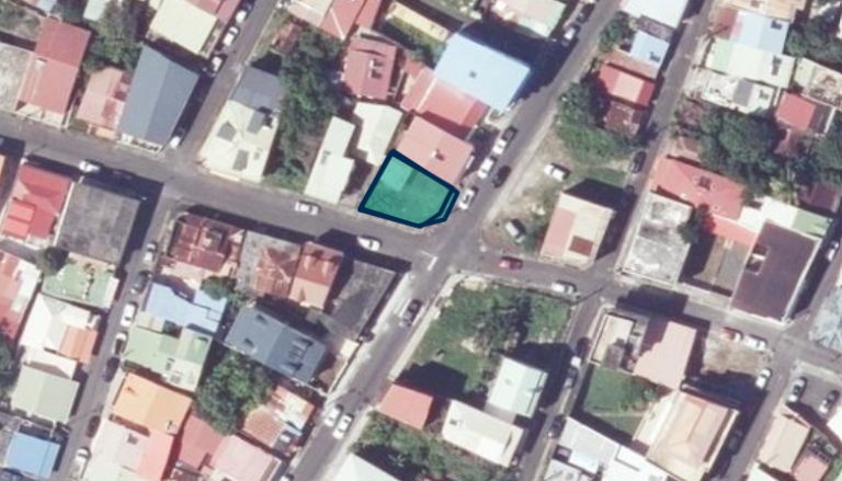 Disponible à la vente, ce terrain constructible borné et viabilisé de 147m2 situé en angle de rue dans le bourg de Capesterre-Belle-Eau.