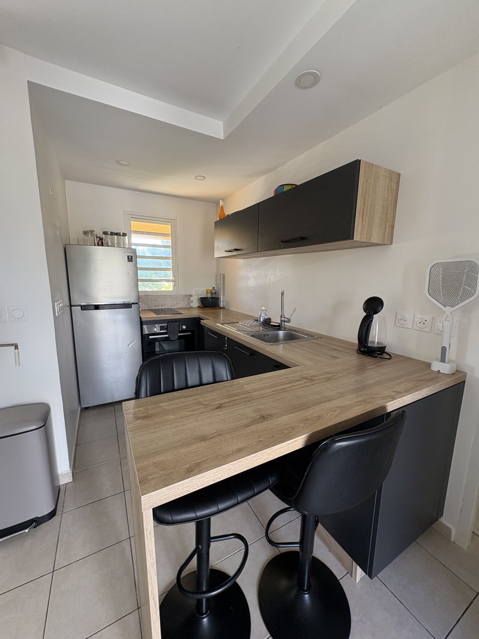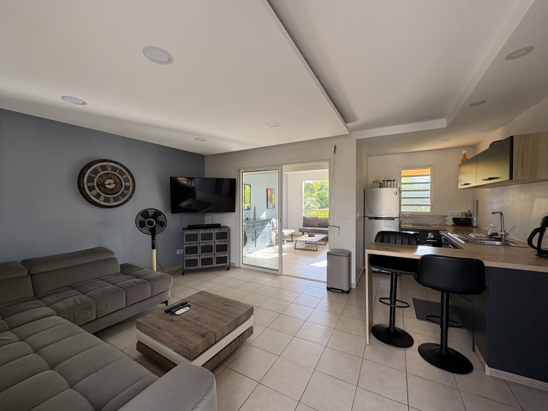 Venez découvrir cet appartement T2 moderne de 52,48m2 vendu meublé situé au 1er et dernier étage dans une résidence sécurisée avec piscine à Plaisance sur le secteur de Baie-Mahault. Environnement calme, à seulement quelques minutes de Jarry, commerces, école et professionnels de santé. Il se compose d'une entrée avec rangement, un séjour, une cuisine équipée (lave vaisselle, four, mirco-ondes, réfrégirateur...), une chambre climatisée avec placard et une salle d'eau avec WC. Une terrrase joliement décorée est également à votre disposition. Une place de parking privative.