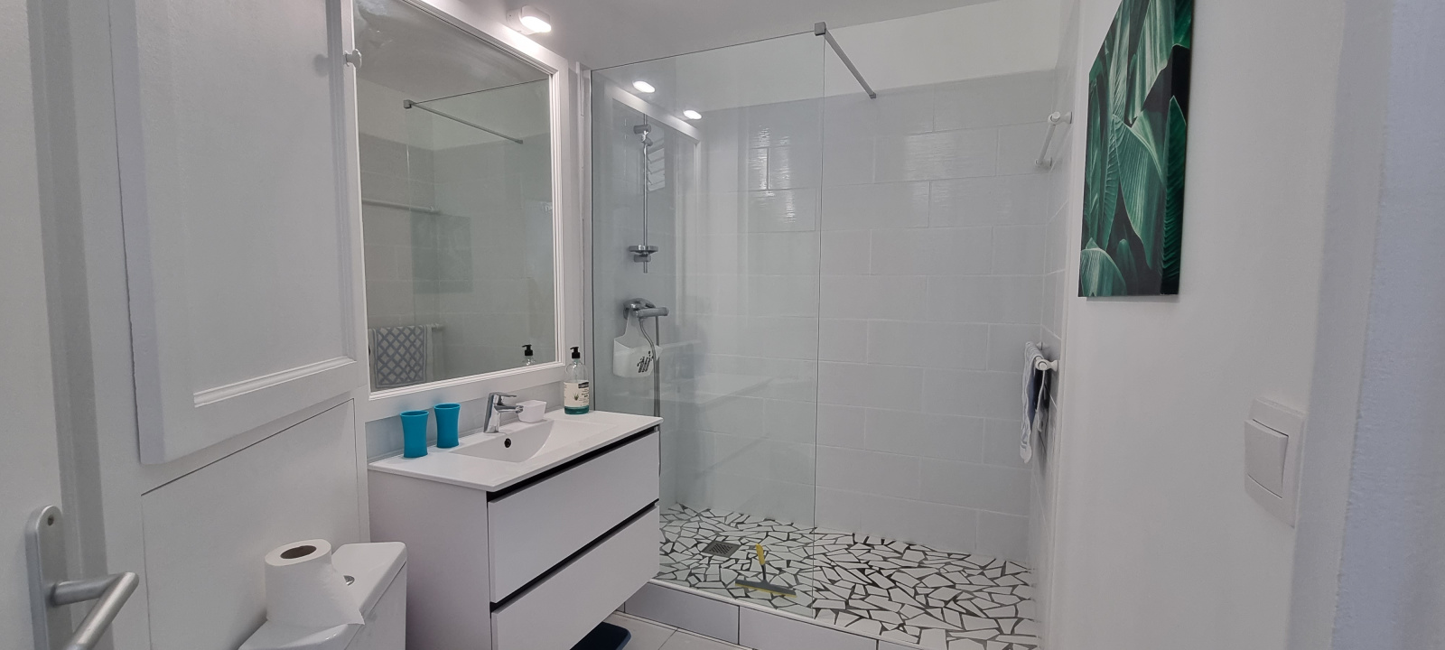 Il comprend 1 chambre climatisée, 1 cuisine sur la terrasse, 1 salle d'eau flambant neuve et un toilette.