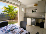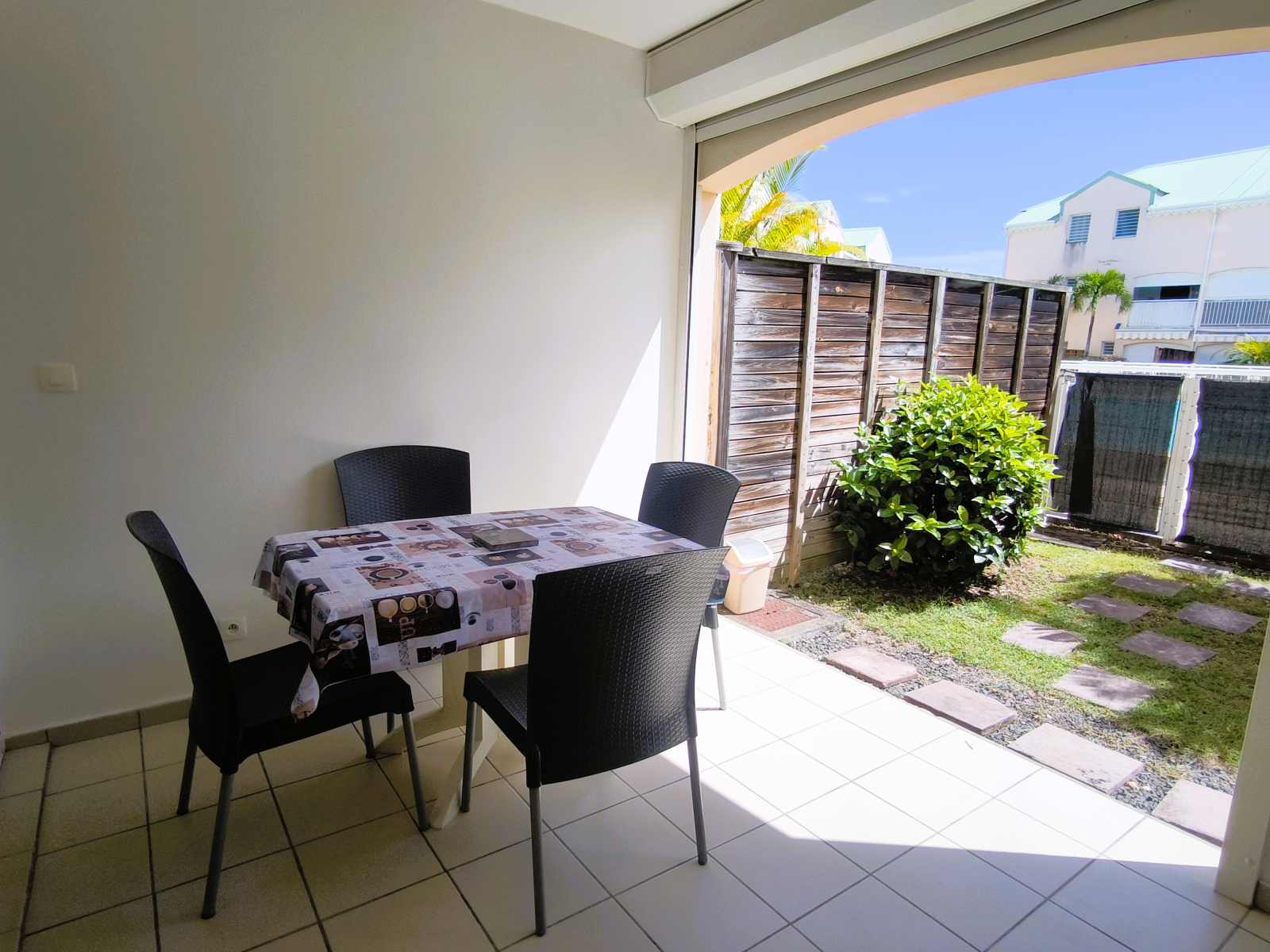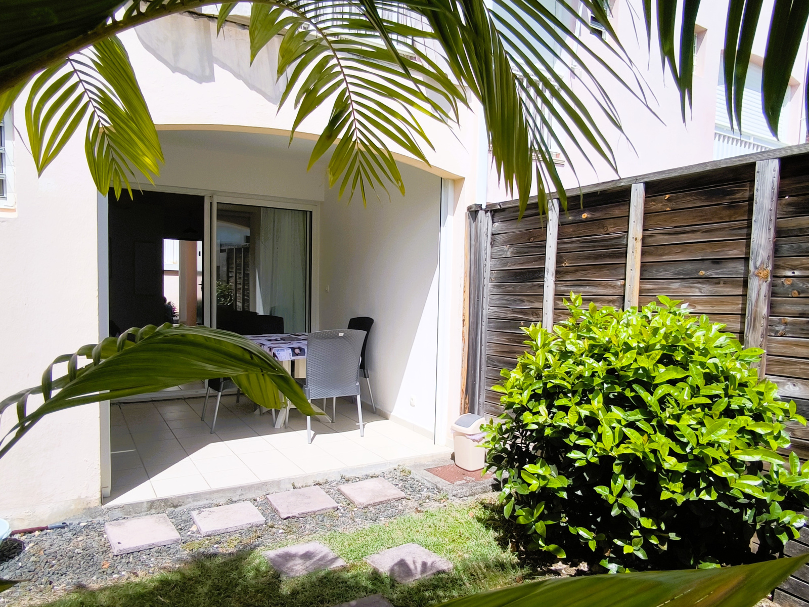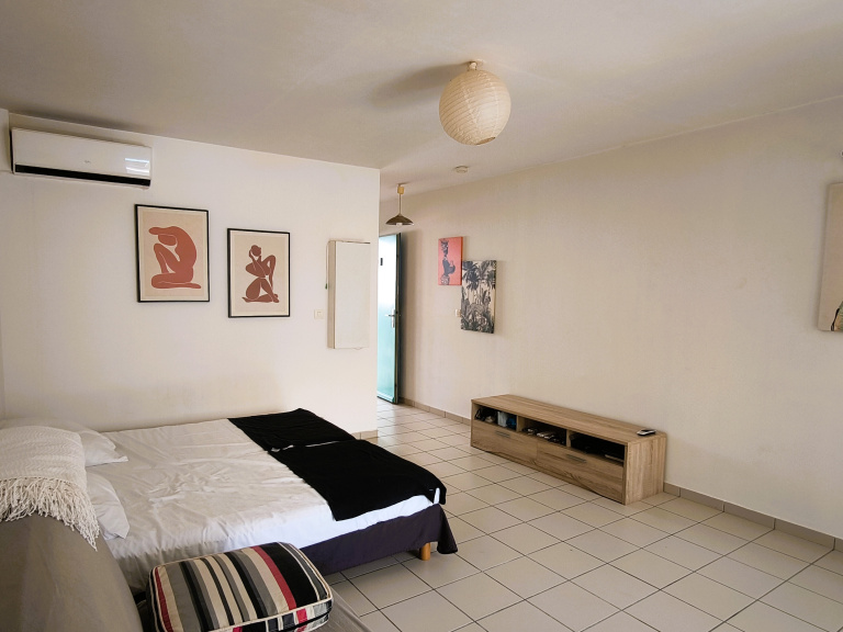 D'une surface totale de 35m2, il se trouve en rez-de-chaussée et se compose d'une entrée avec placard, d'une salle d'eau avec WC, d'une belle pièce à vivre climatisée et d'une terrasse avec kitchenette qui se ferme par un volet roulant.
