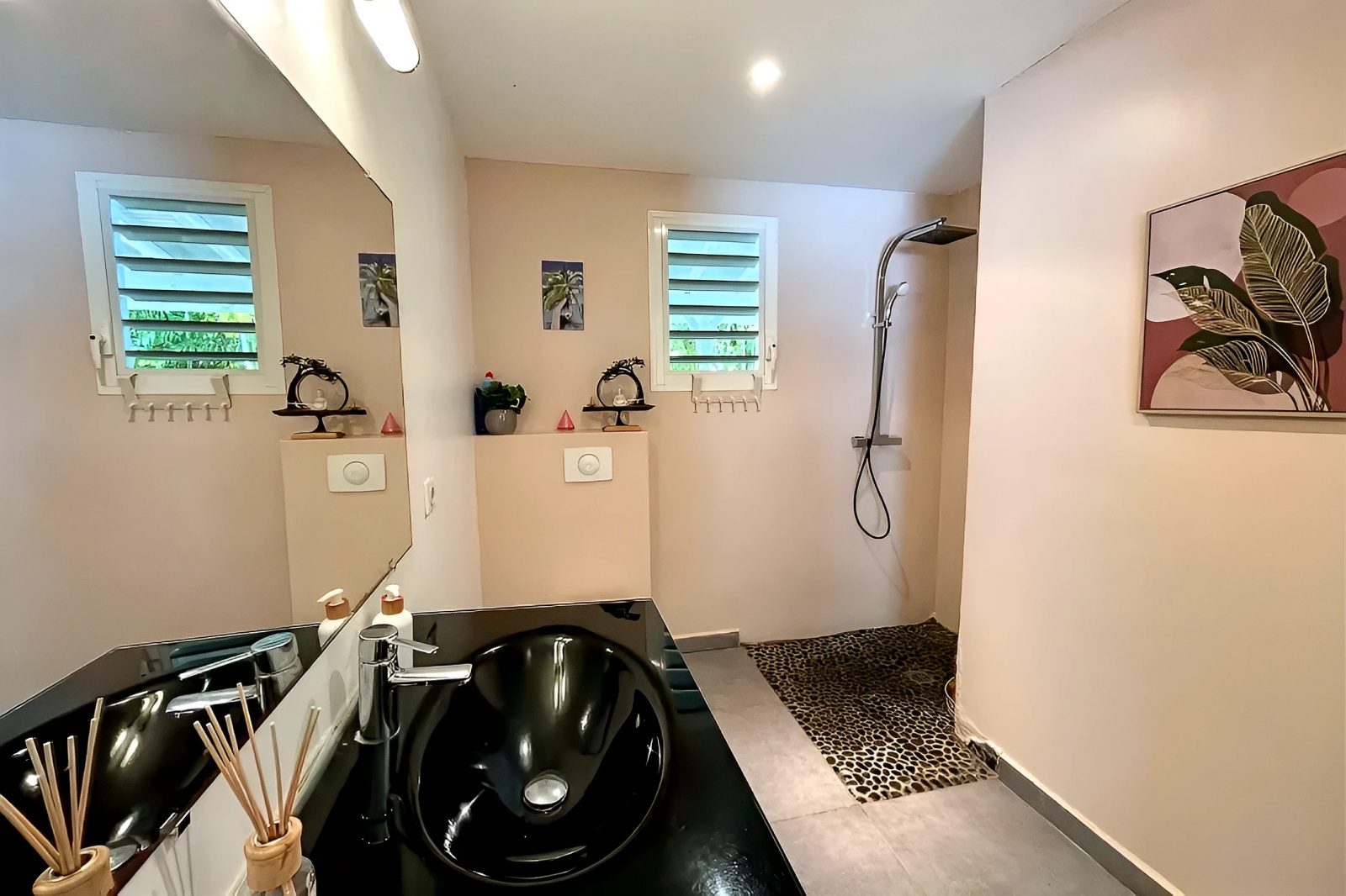 Une salle d'eau avec WC