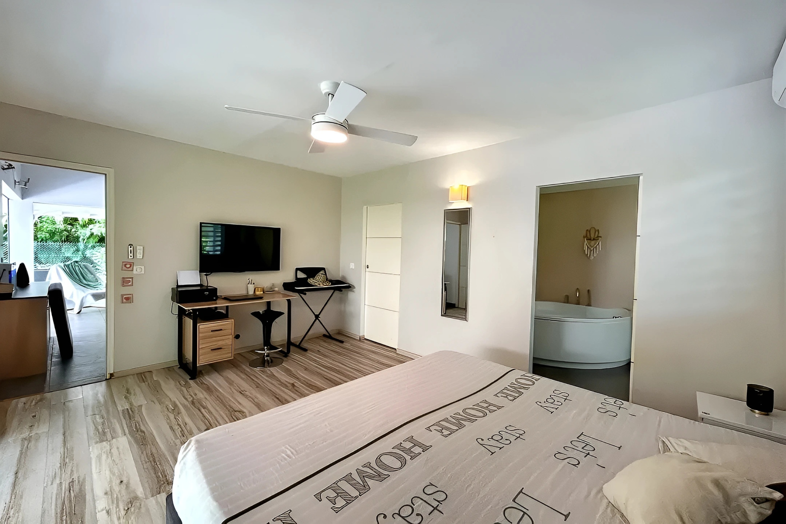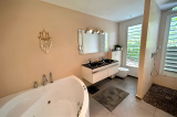 La vaste suite parentale, chaleureuse et accueillante, se compose d'une chambre, d'un dressing et d'une salle de bain (baignoire + douche) avec WC. Elle est également ouverte sur la terrasse et la piscine.