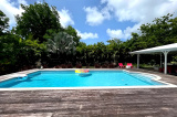-Une jolie piscine 10x5 avec plage de deck et carbet