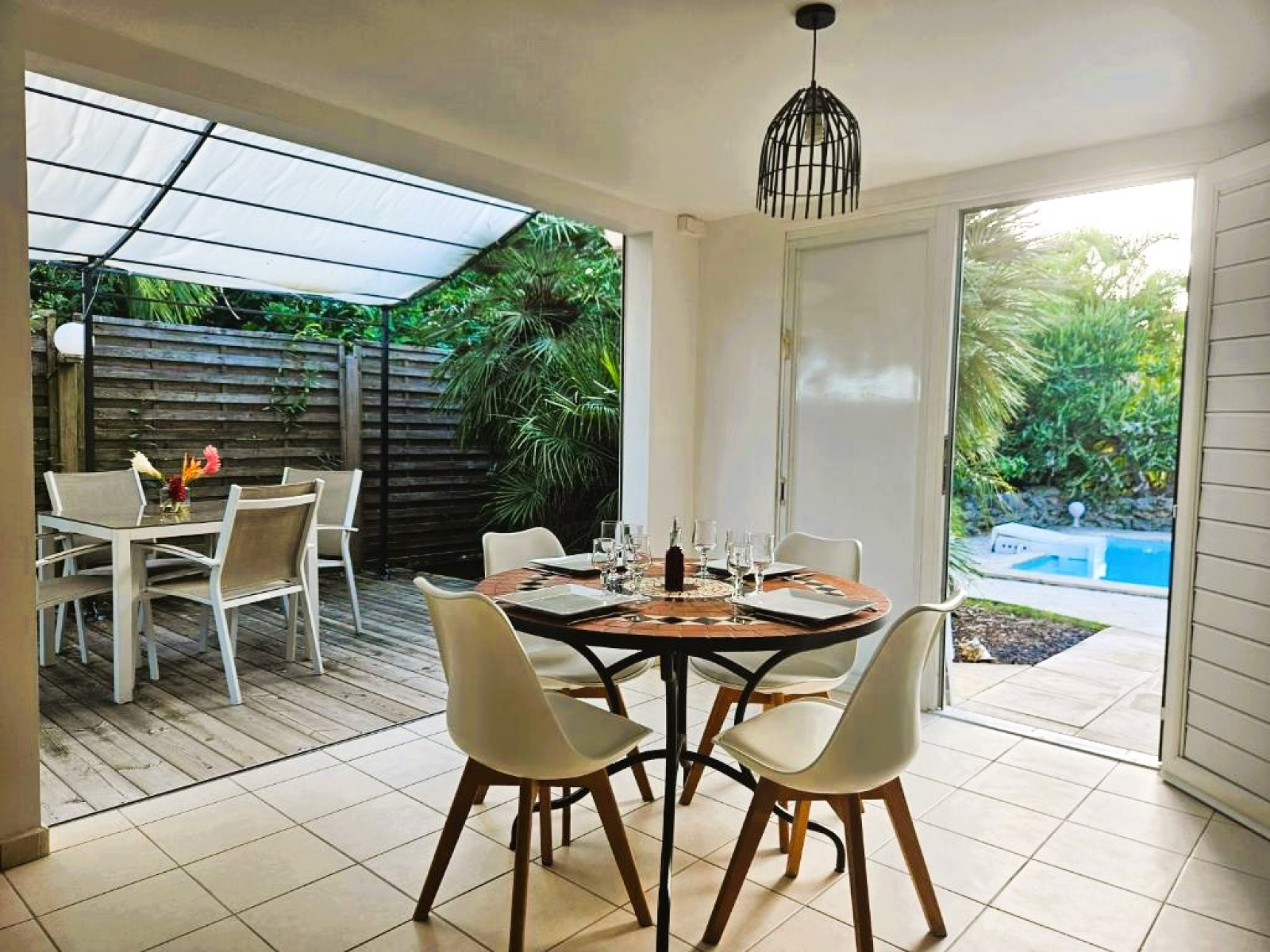 L'ensemble, édifié sur un magnifique terrain arboré de 1539m2 et dessiné par un architecte, est composé de 3 logements entièrement indépendants qui vous offrent de multiples opportunités d'exploitation et se partagent une superbe piscine 8x4 entourée d'une végétation luxuriante et rafraichissante