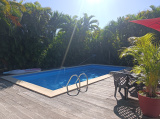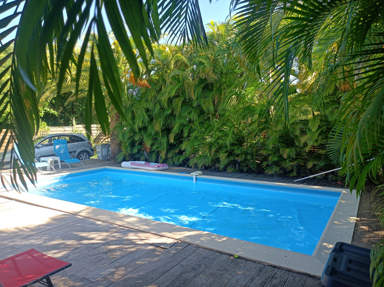 Venez découvrir cette magnifique villa de plain pied avec sa structure en bois et béton située dans un lotissement dans la commune de Saint François sur une parcelle de terrain clôturée de 1356m² composée de 4 chambres climatisées dont une pouvant être utilisée comme bureau, une salle de bain et une salle d'eau , une cuisine aménagée un séjour , une terrasse et une piscine au chlore. Vous pourrez également profiter des arbres fruitiers et d'un calme présent dans le grand jardin à l'abri des regards.